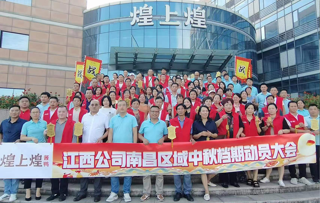 為有效達成中秋檔期銷售目標,9月6日,煌上煌江西公司南昌戰(zhàn)區(qū)召開決勝中秋檔誓師動員會?;蜕匣歪u鹵事業(yè)部副總監(jiān)兼江西公司總經理李軍,江...